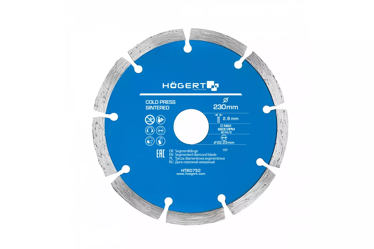 <h2>Технические характеристики сегментного алмазного диска Hogert HT6D752 230х2.6х22.3 мм</h2>