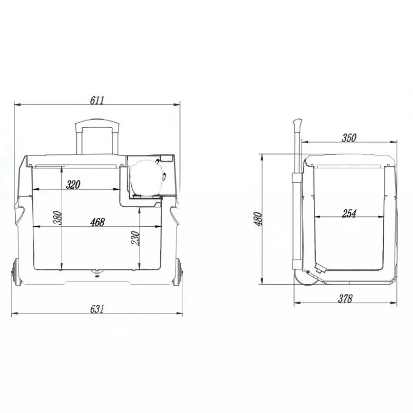 - Комплектація: Холодильник, адаптер мережі 220 Вт, кабель для підключення до джерела постійного струму 12/24 Вт, ін
