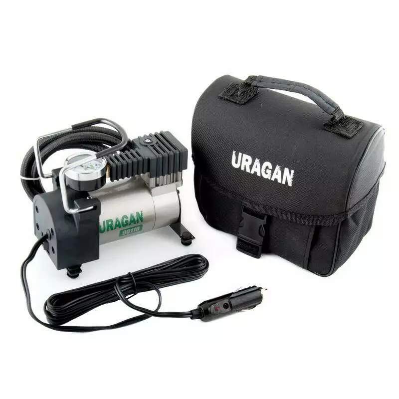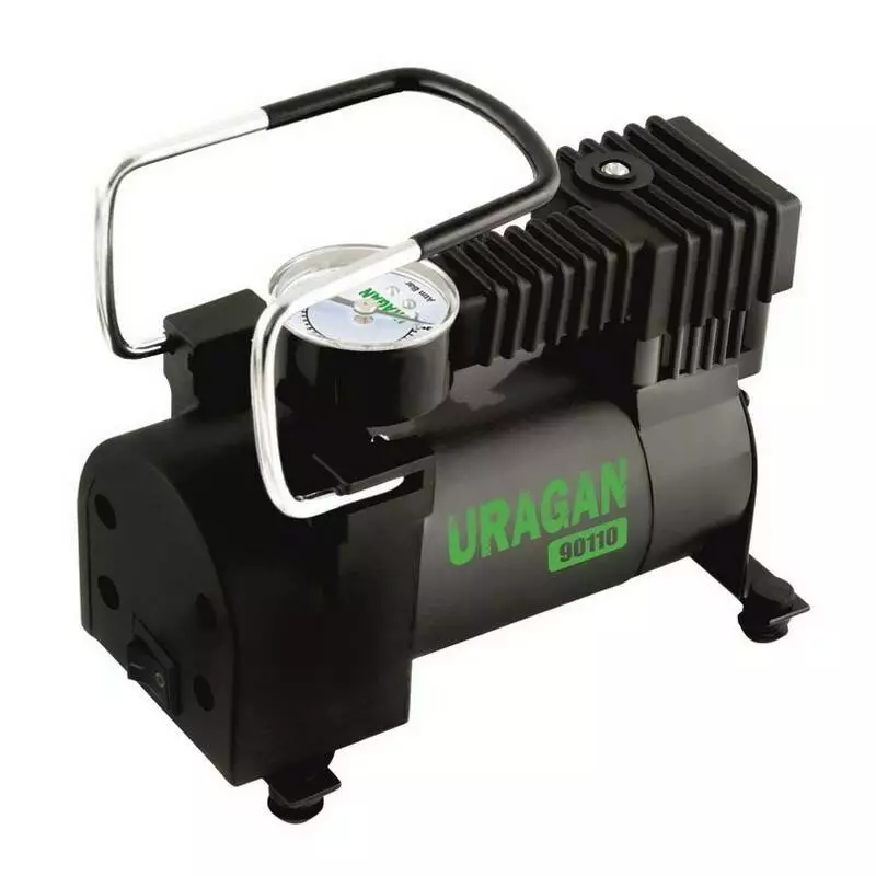 Автокомпрессор однопоршневой от прикуривателя URAGAN автомобильный компрессор для шин R13-R15 7Атм 35 л/мин 150 Вт (90110)