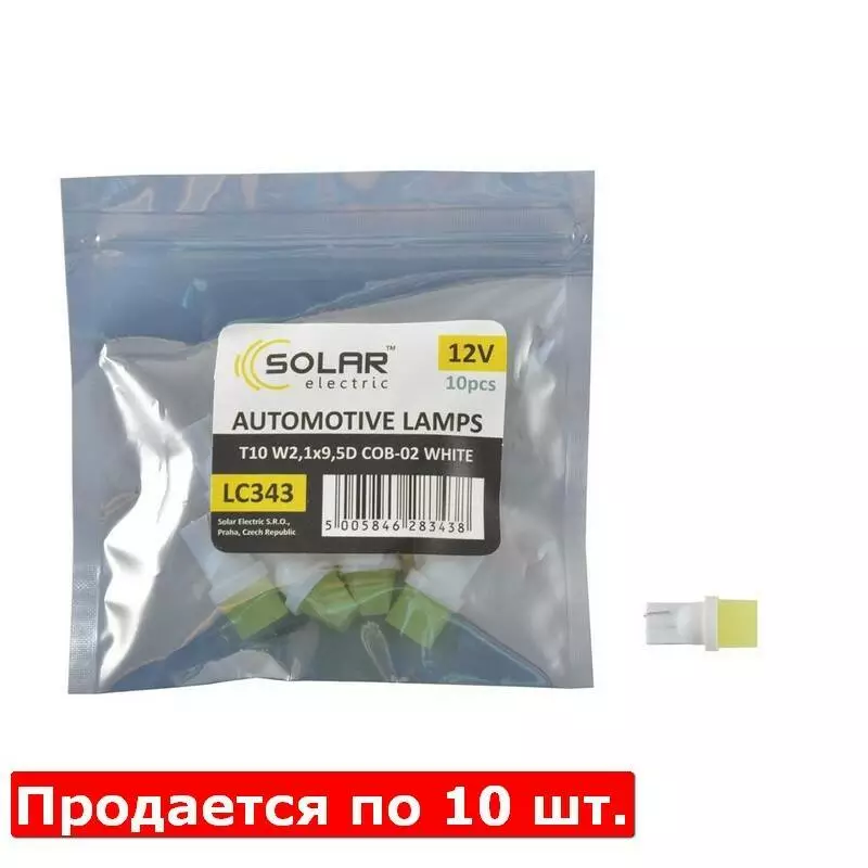 Автолампы светодиодные Solar 12V T10 W2.1x9.5d 1COB white