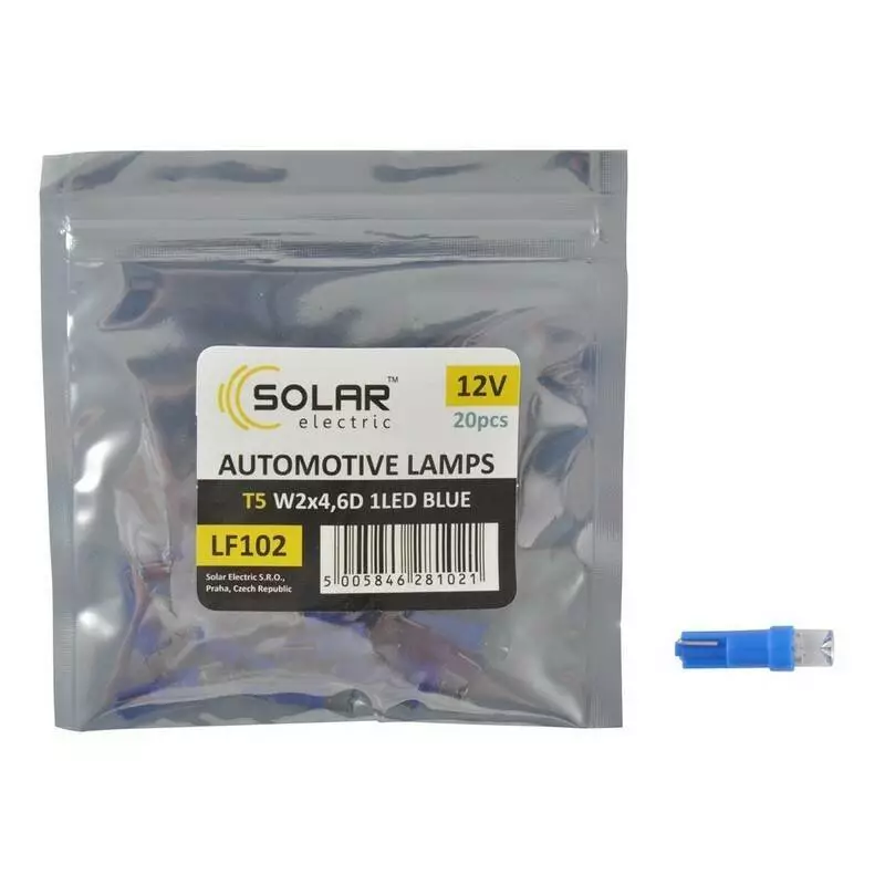 Автолампы светодиодные Solar 12V T5 W2x4.6d 1leds blue (LF102_P)