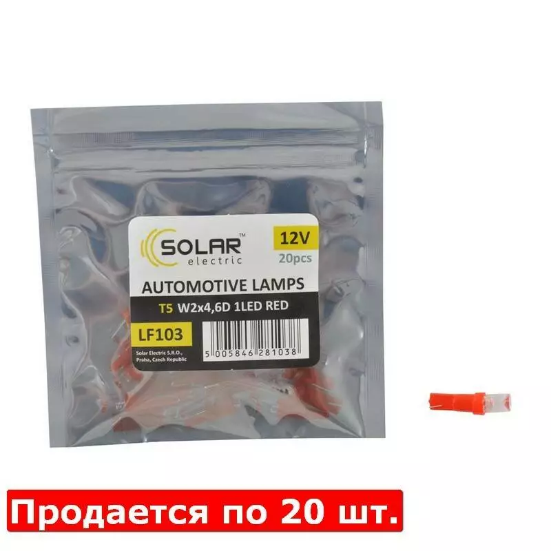 Автолампы светодиодные Solar 12V T5 W2x4.6d 1leds red
