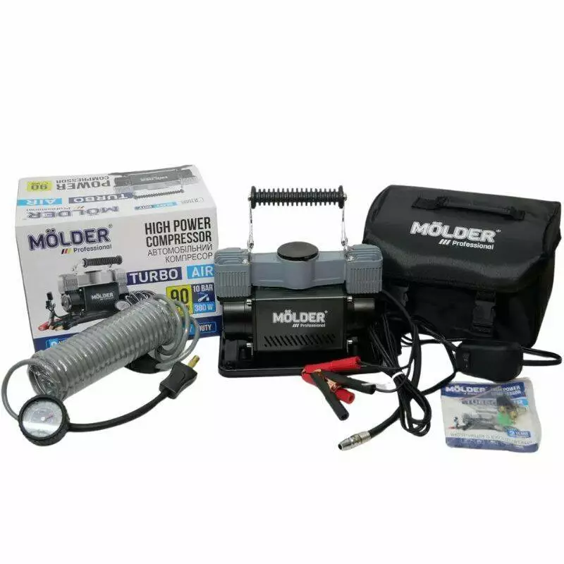 Автомобильный компрессор двухпоршневой MOLDER с витым шлангом 10Атм 90 л/мин 380Вт (MA25300)