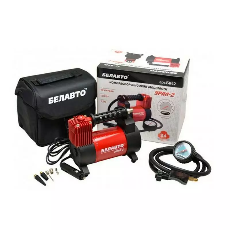 Автомобильный компрессор однопоршневой BelAuto УРАЛ-2 для накачки шин R13-R19 10 Атм 40 л/мин 170 Вт (BK42)