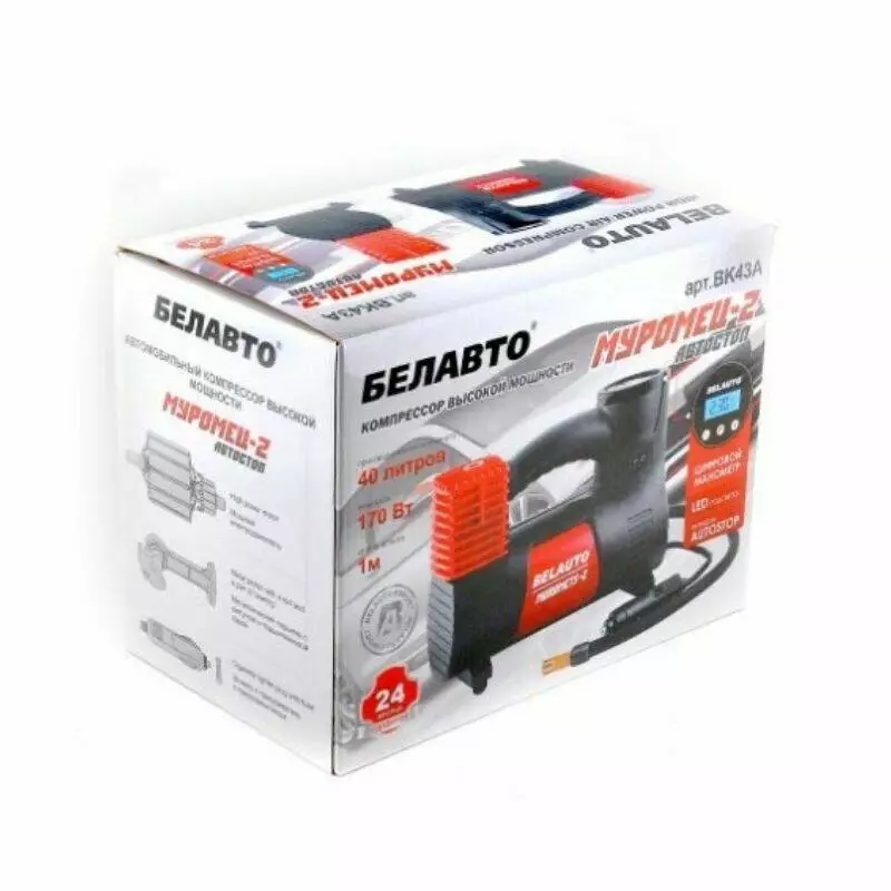 Автомобильный компрессор однопоршневой с цифровым манометром BelAuto МУРОМЕЦ-2 для накачки шин R13-R19 10 Атм 40 л/мин 170 Вт (BK43A)