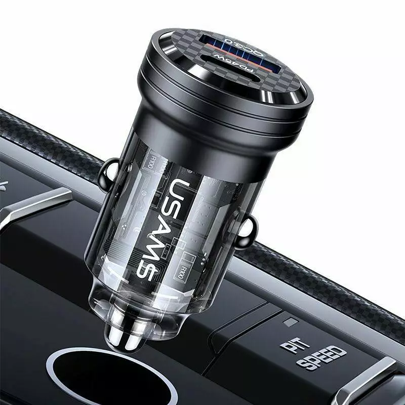 Автомобильное ЗУ Usams C35 45W Aluminum Alloy Transparent A+C Mini Car Charger