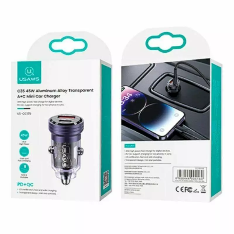Автомобильное ЗУ Usams C35 45W Aluminum Alloy Transparent A+C Mini