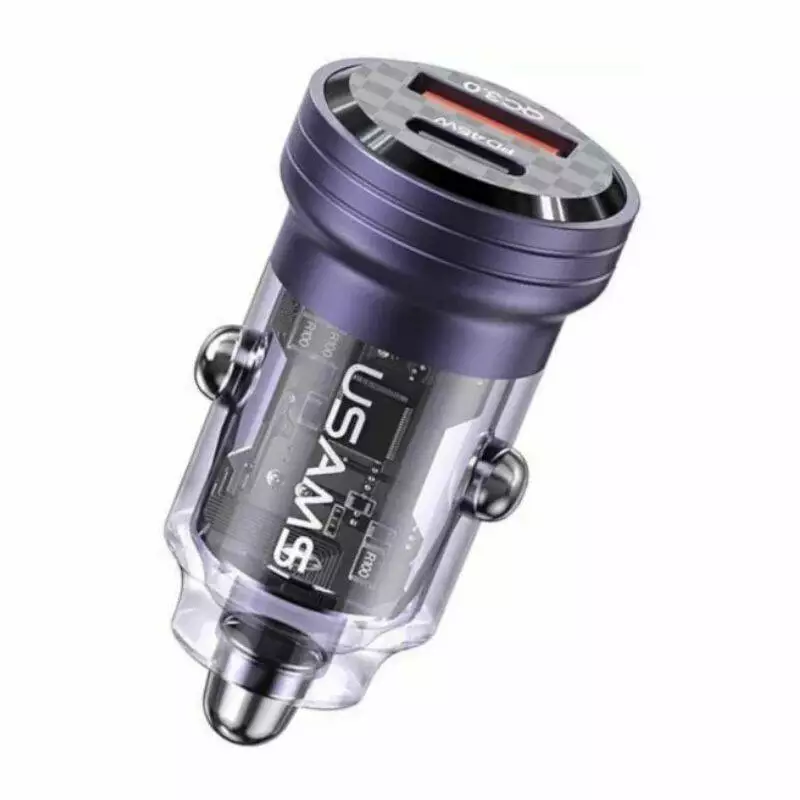 Автомобильное ЗУ Usams C35 45W Aluminum Alloy Transparent A+C Mini Car Charger purple
