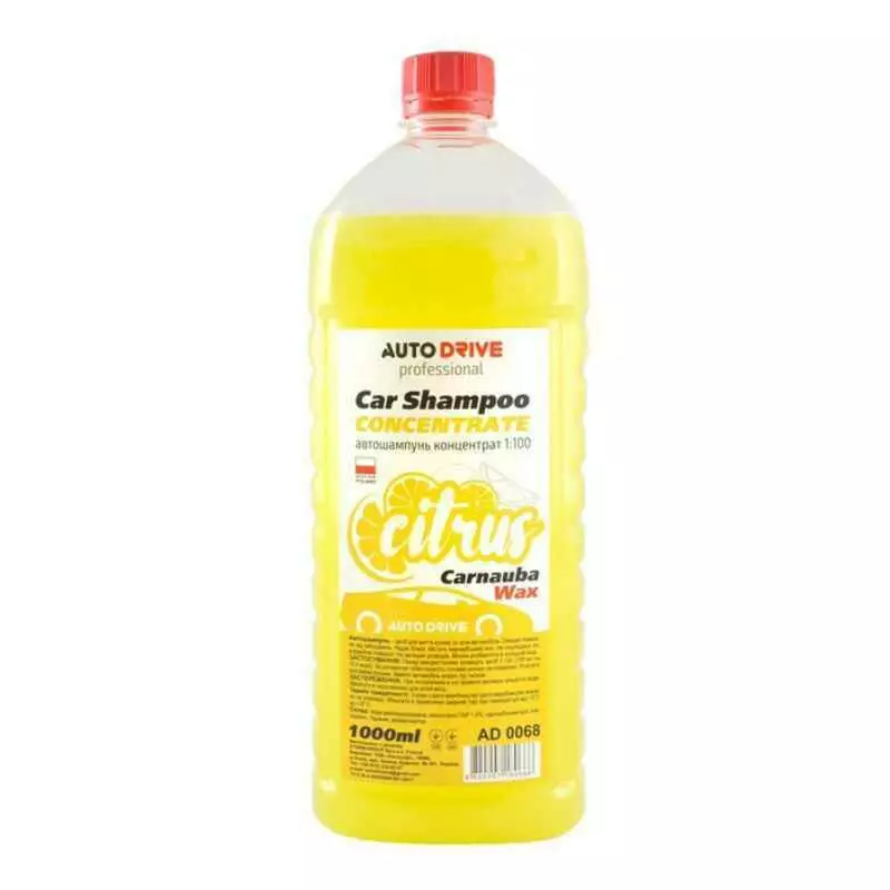 Автошампунь концентрат з воском карнауби Auto Drive цитрус, 1:100, 1л (AD0068)