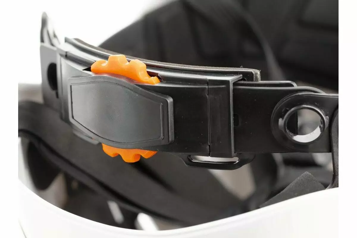 <p>Каска выполнена из ABS-пластика, устойчивого к ультрафиолету. Она легкая, имеет универсальный размер, поэтому подходит для большинства пользователей. 4-точечный ремень для подбородка надежно фиксирует каску на голове даже во время активных движений. Белый цвет помогает оставаться заметным на площадке.</p>