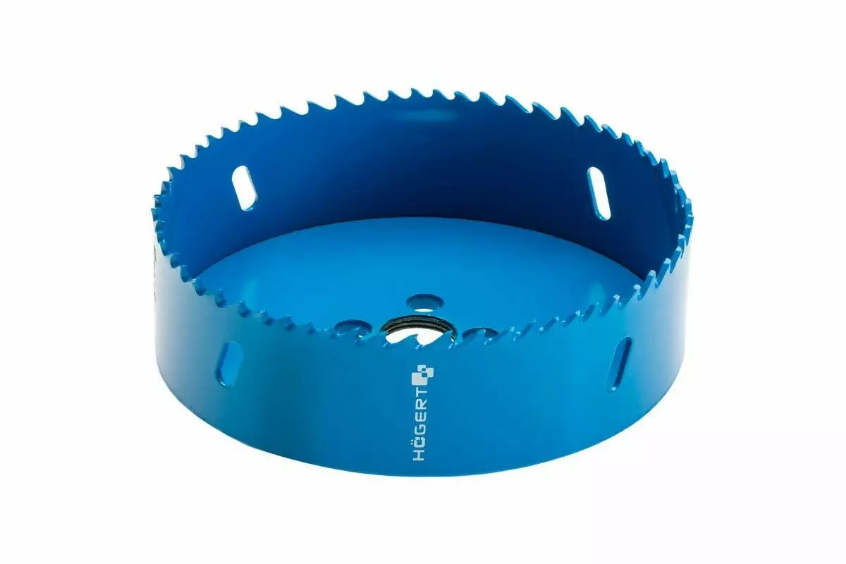 <h2>Биметаллическая коронка Hogert 121 мм для работы с различными материалами</h2>