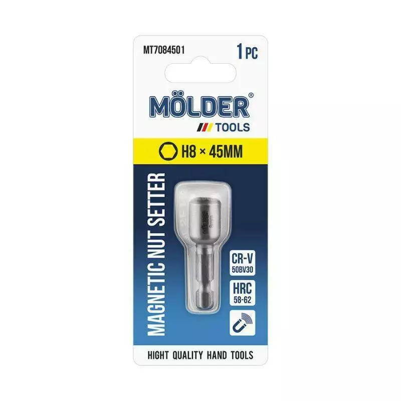 Бита магнитная для кровельных саморезов MOLDER, H8x45мм, 1шт в блистере (MT7084501)