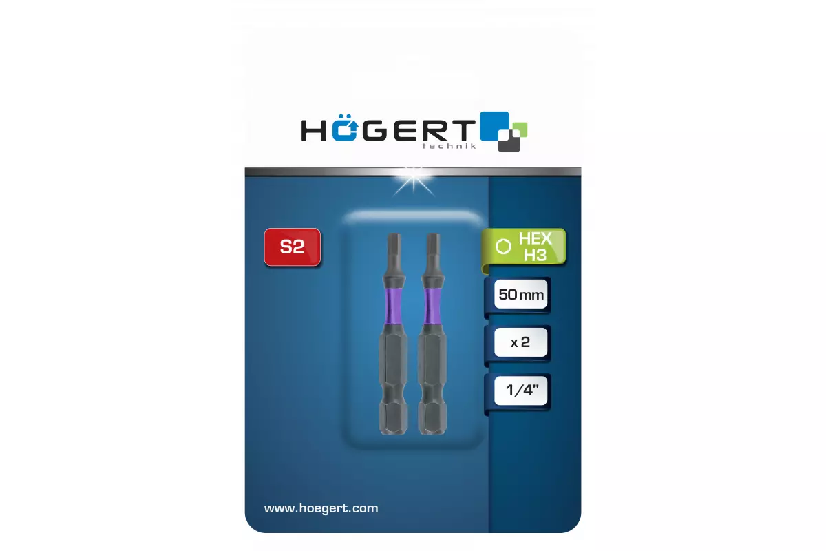 <p>Биты HEX ударные длинные 3 мм 50 мм S2 сталь набор 2 шт Hogert</p>