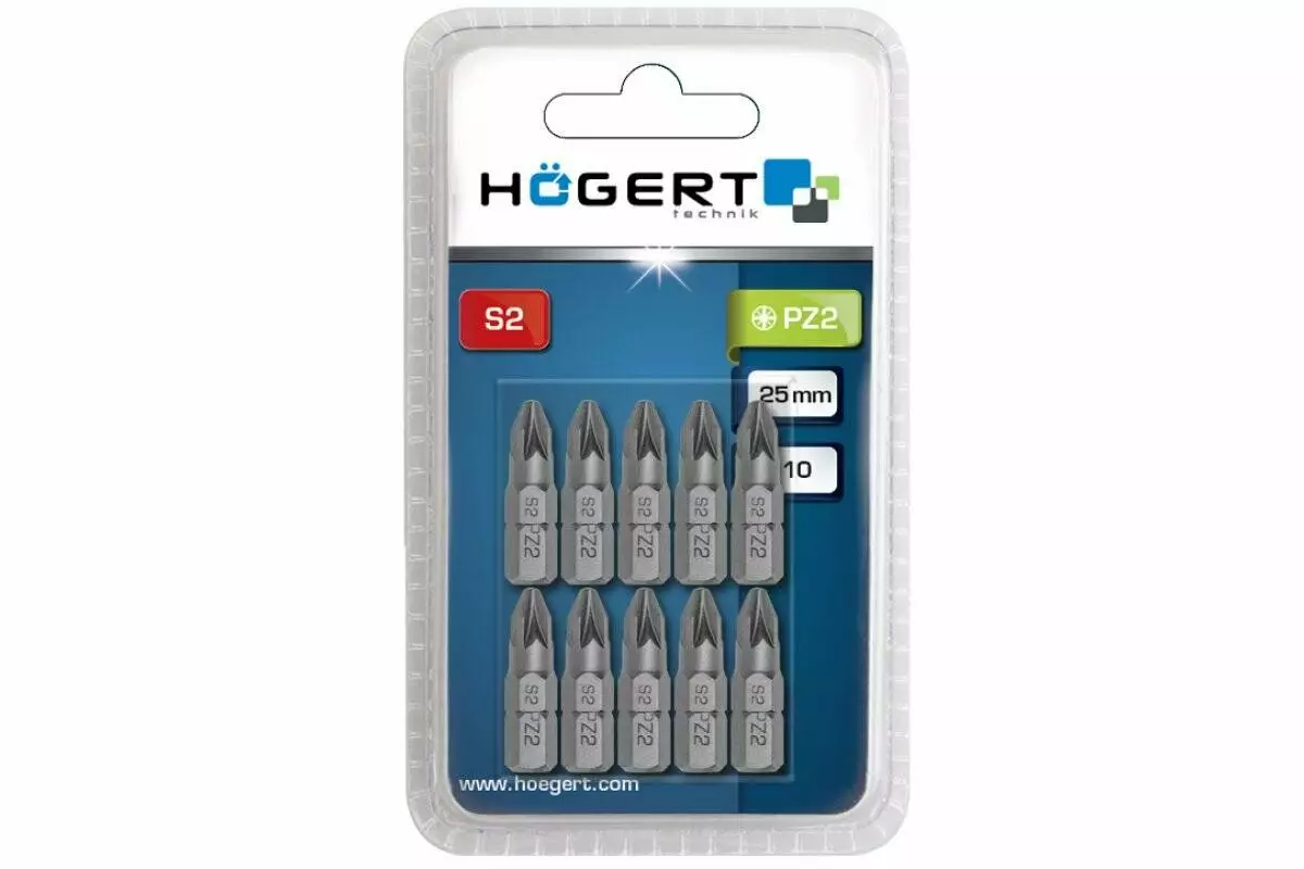 <h3>Характеристики биты короткие PZ2 25 мм S2 сталь Hogert (HT1S317)</h3>