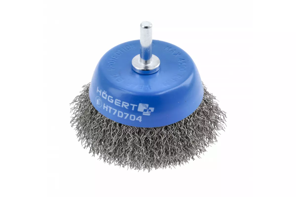Чашечная щётка Hogert 75 мм 4500 об/мин из нержавеющей стали для дрели прямая (HT7D704)