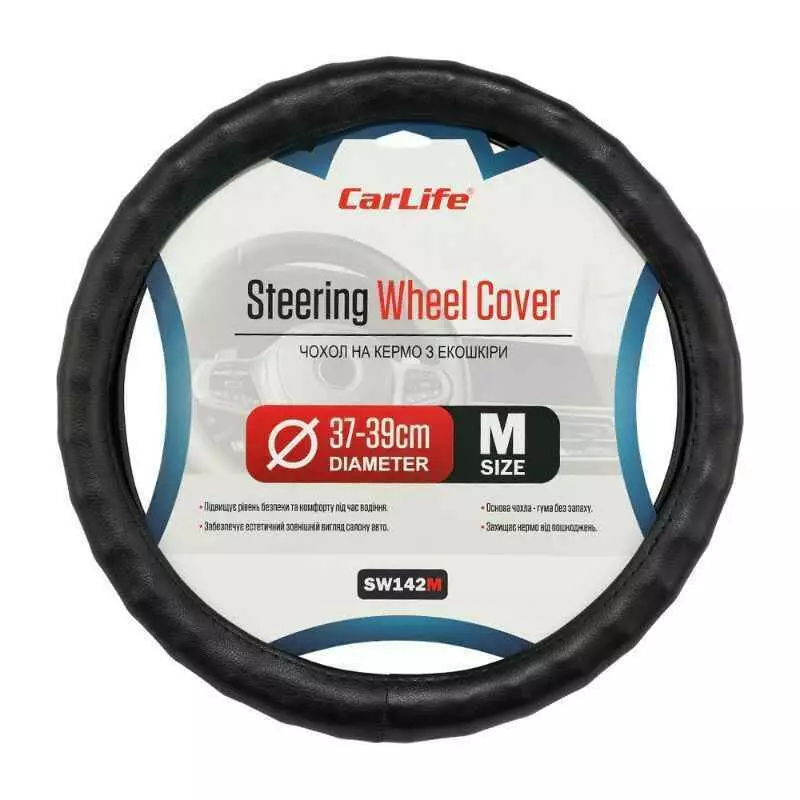 Чехол на руль Carlife 37-39см, экокожа, черный, один шов (SW142M)