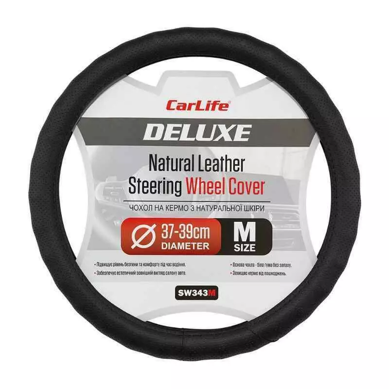 Чехол на руль Carlife 37-39см, кожа, черн, белая основа, один шов, перф. (SW343M)