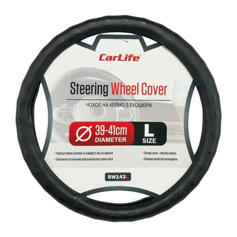 Чехол на руль Carlife 39 - 41см, экокожа, черный, один шов, перф. (SW143L)
