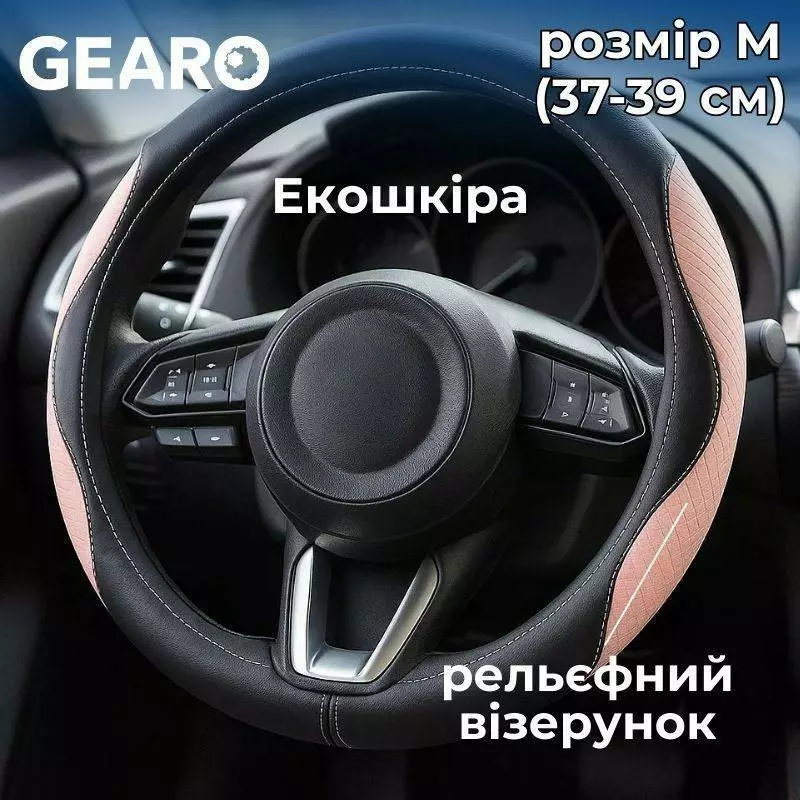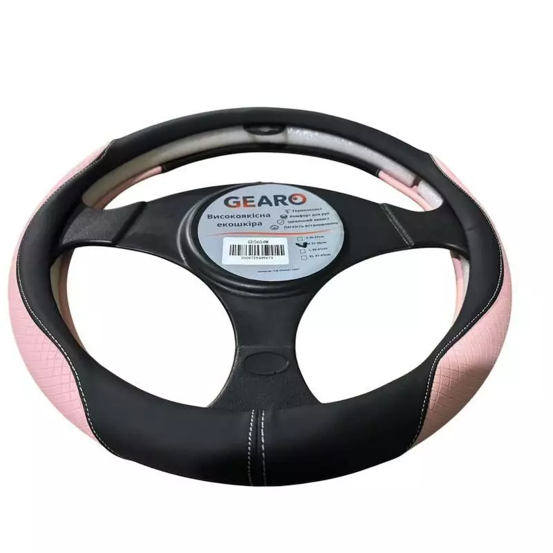 Чехол на руль из экокожи Gearo с рельефным узором черный/розовый размер M (GE0604M)
