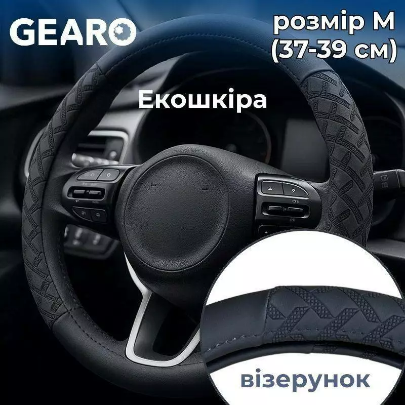 Чехол на руль из экокожи Gearo с узором черный размер M (GE0610M)