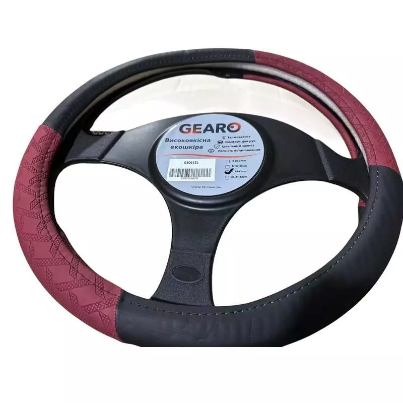 Чехол на руль из экокожи Gearo с узором черный/бордо размер L (GE0613L)