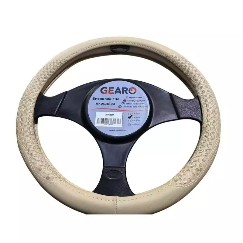 Чехол на руль из экокожи Gearo с узором и перфорацией бежевый размер M (GE0615M)