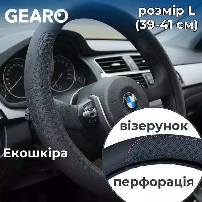 Чехол на руль из экокожи Gearo с узором и перфорацией черный размер L (GE0614L)