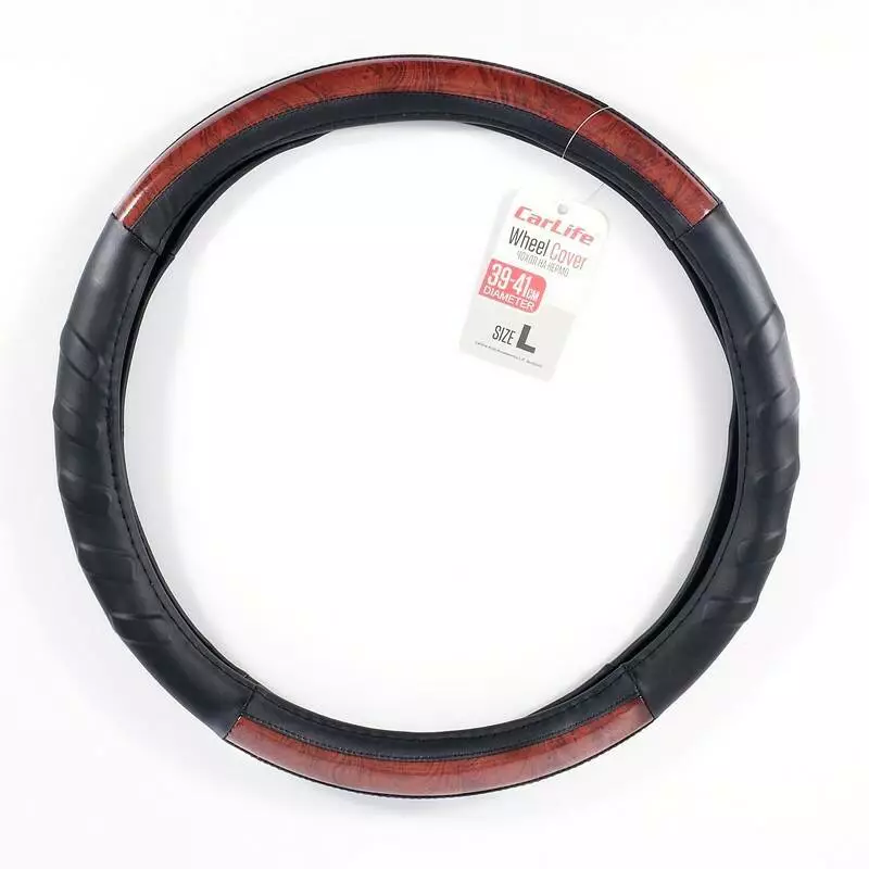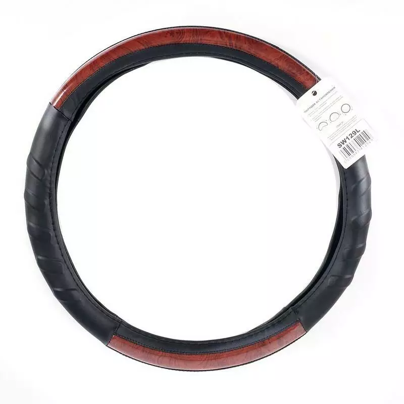 Чехол на руль L (39-41 см) из экокожи и белой резины CARLIFE черный с коричневыми вставками (SW129L)