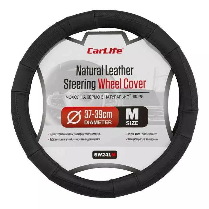 Чохол на кермо Carlife 37-39см, шкіра, чорний (SW241M)