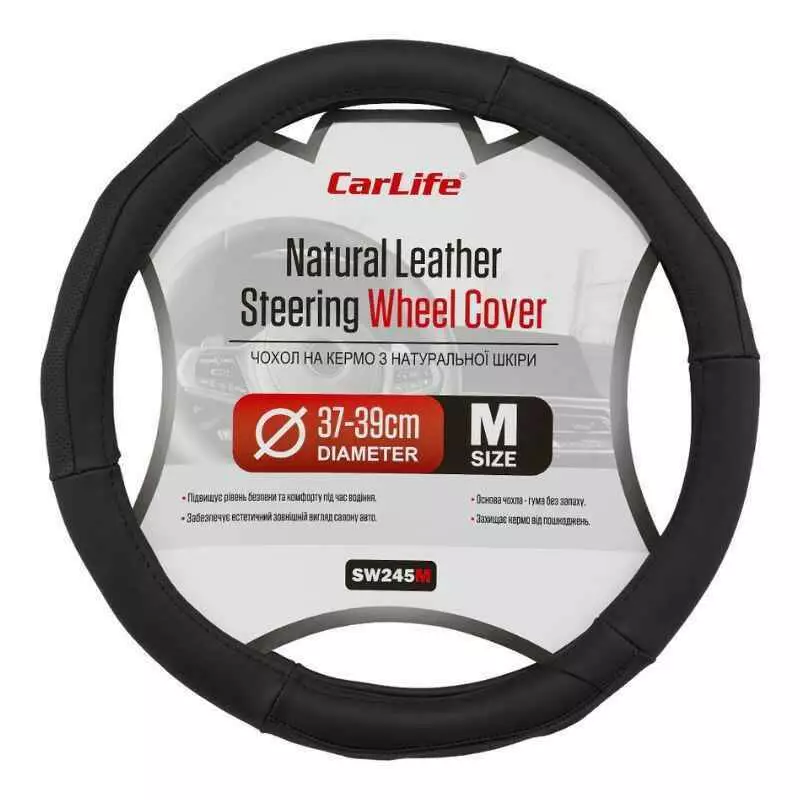 Чохол на кермо Carlife 37-39см, шкіра, чорний (SW245M)