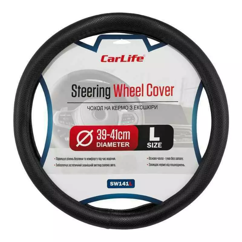 Чохол на кермо Carlife 39 - 41см, екошкіра, чорний, один шов, перфорований (SW141L)