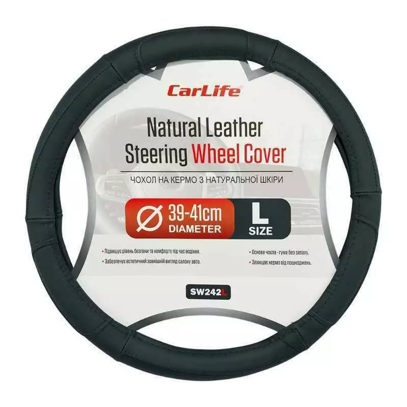 Чохол на кермо Carlife 39 - 41см, шкіра, чорний (SW242L)
