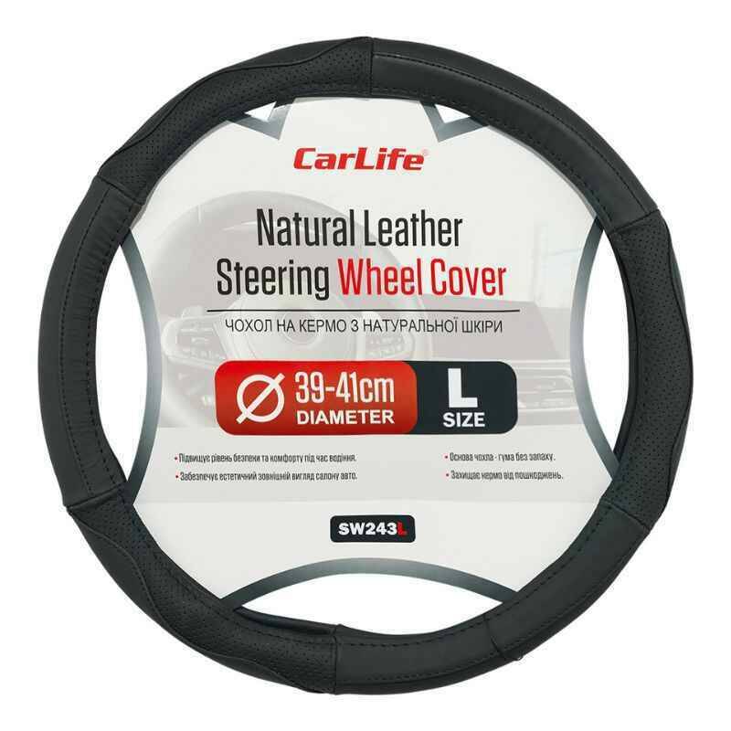 Чохол на кермо Carlife 39 - 41см, шкіра, чорний (SW243L)