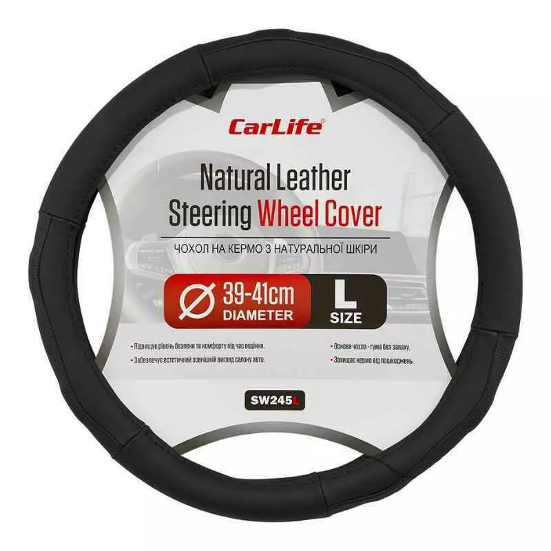 Чохол на кермо Carlife 39 - 41см, шкіра, чорний (SW245L)