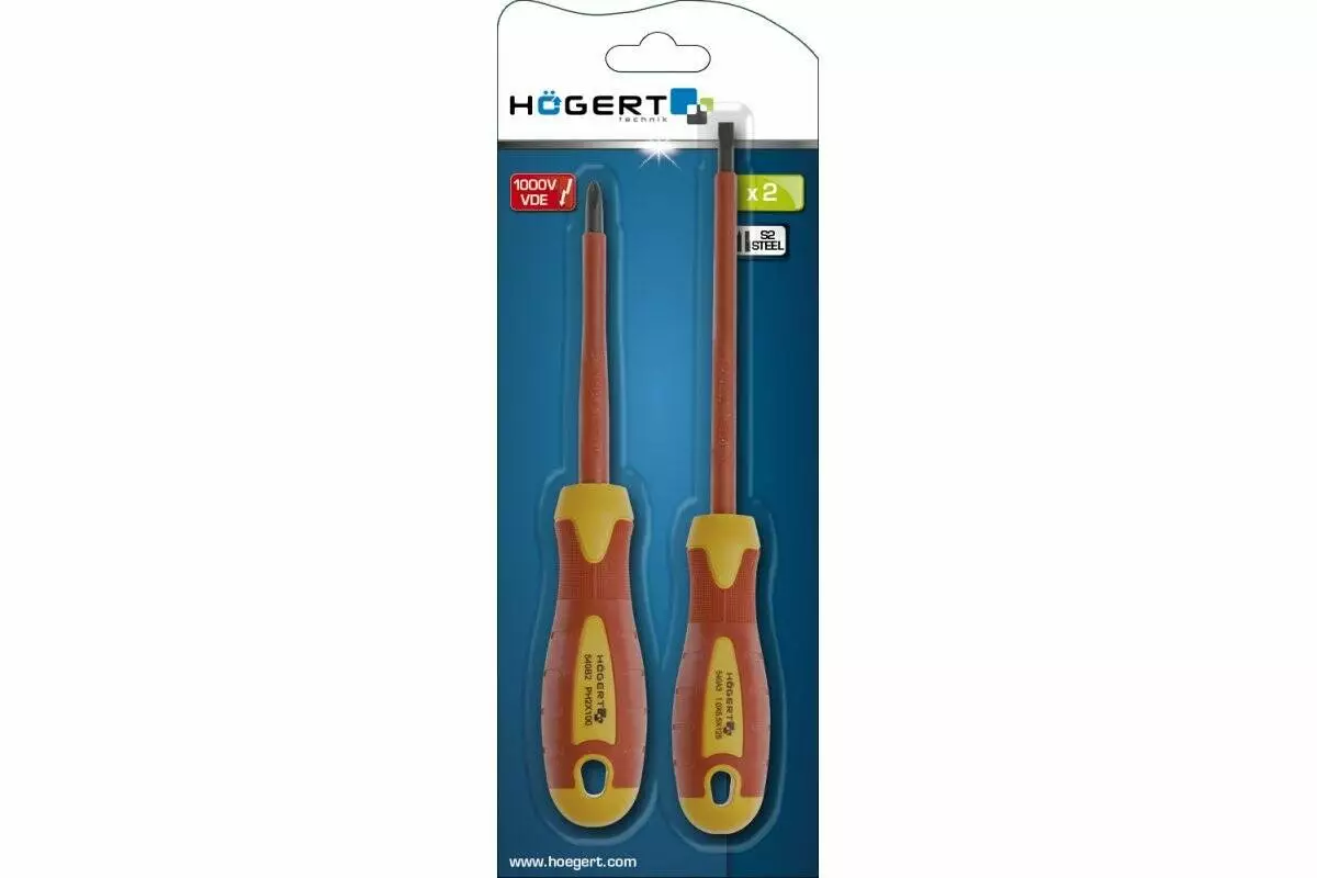<h3>Диэлектрические отвертки Hogert SL5.5 125 мм и PH2 100 мм 1000V S2 сталь – функциональность и безопасность</h3>