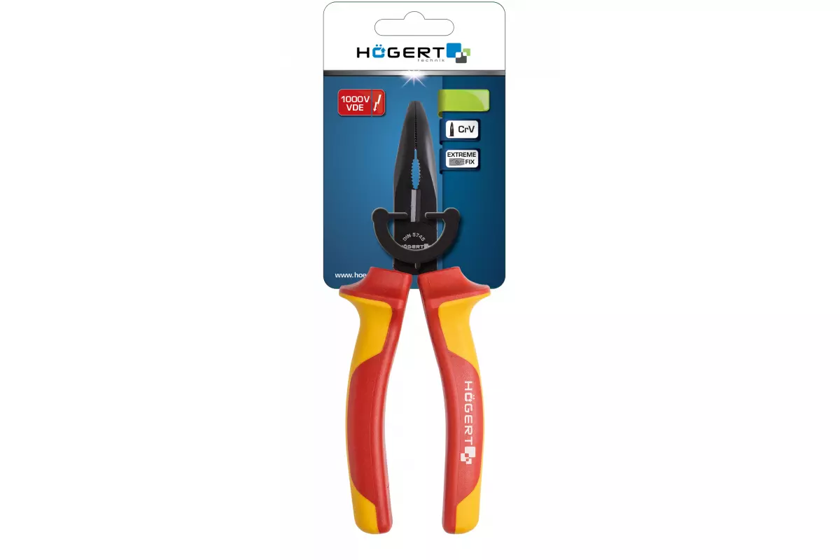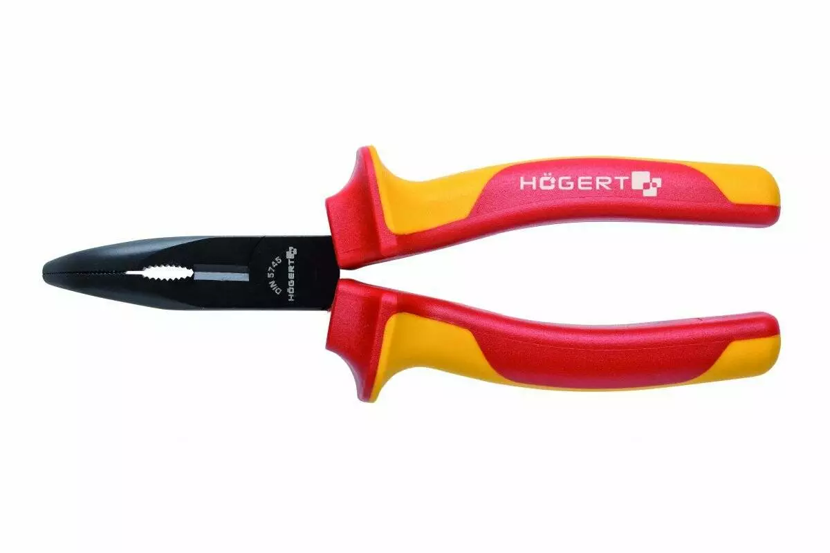 Диэлектрические плоскогубцы удлиненные с изогнутыми полукруглыми губками 200 мм 1000 В Hogert (HT1P923)