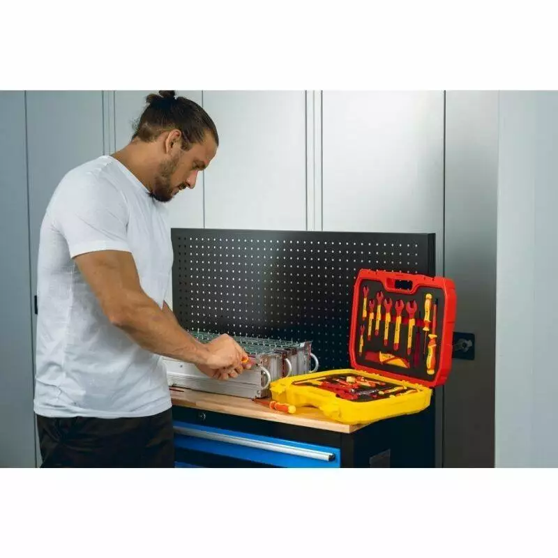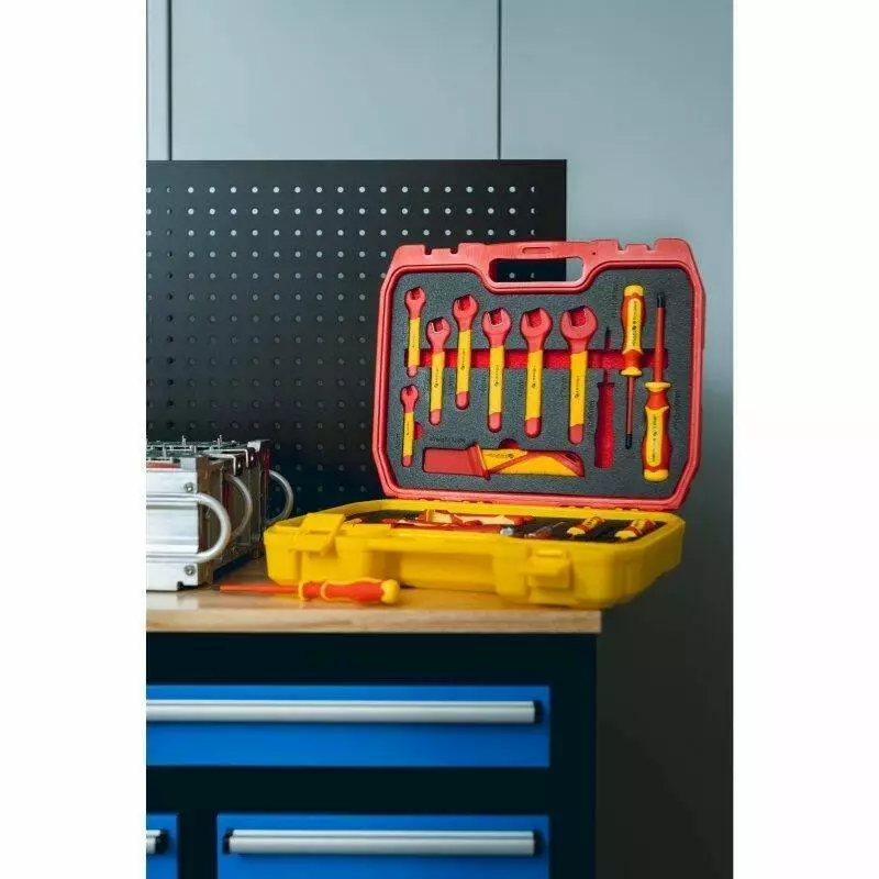 <p>В наборе есть все, что нужно для монтажа и обслуживания электрических систем. Благодаря широкому выбору ключей, отверток и вспомогательного инструмента выполняются разнообразные задачи с повышенной безопасностью. Качественная изоляция каждого предмета позволяет работать под напряжением до 1000V. Удобный кейс помогает поддерживать порядок и обеспечивает быстрый доступ к каждому элементу набора.</p>