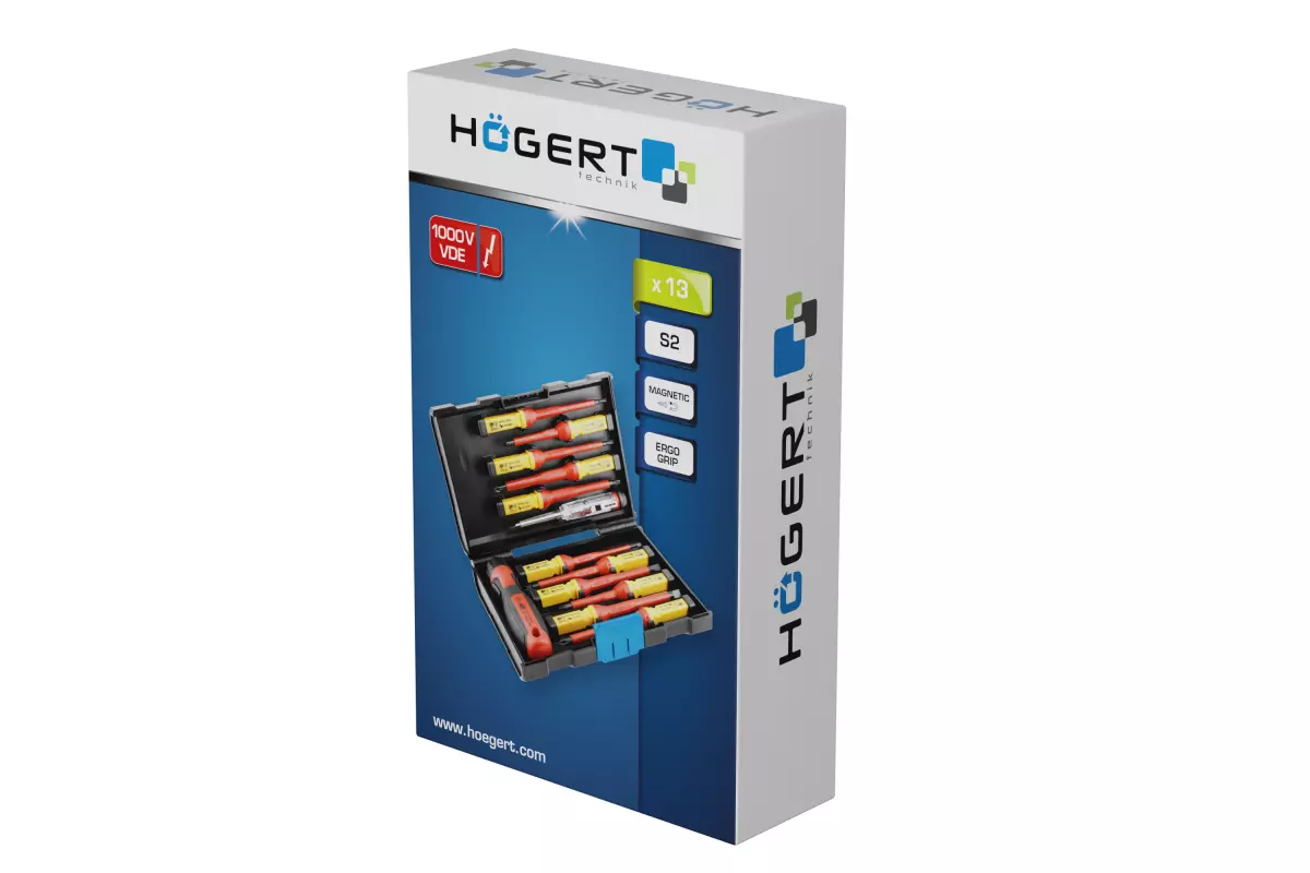 Диэлектрический набор отверток 13 предметов для электриков 1000V Hogert (HT1S997)