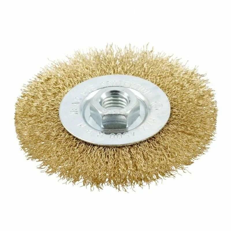 Дисковая щетка 100 мм 4500 об/мин латунная прямая для болгарки Hogert артикул (HT7D753)