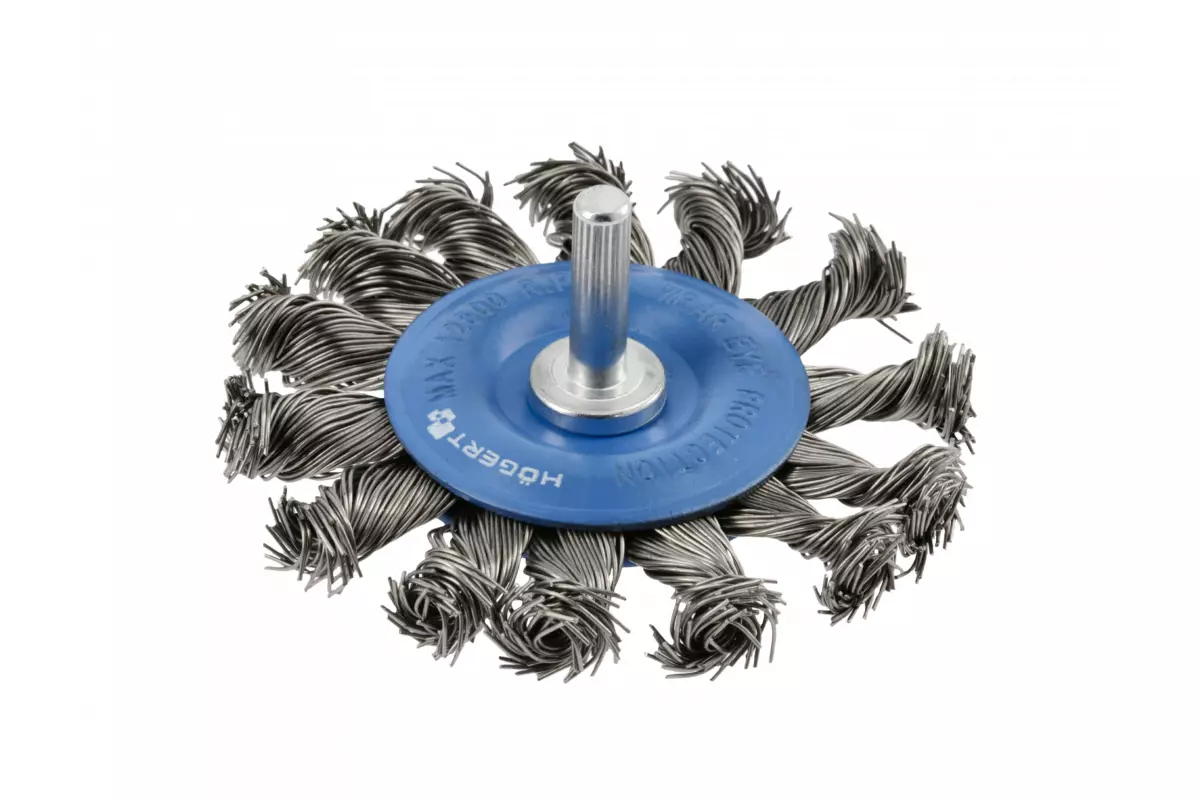 Дисковая щетка Hogert для металла и дерева 75 мм стальная кручёная для дрели 20000 об/мин (HT7D716)