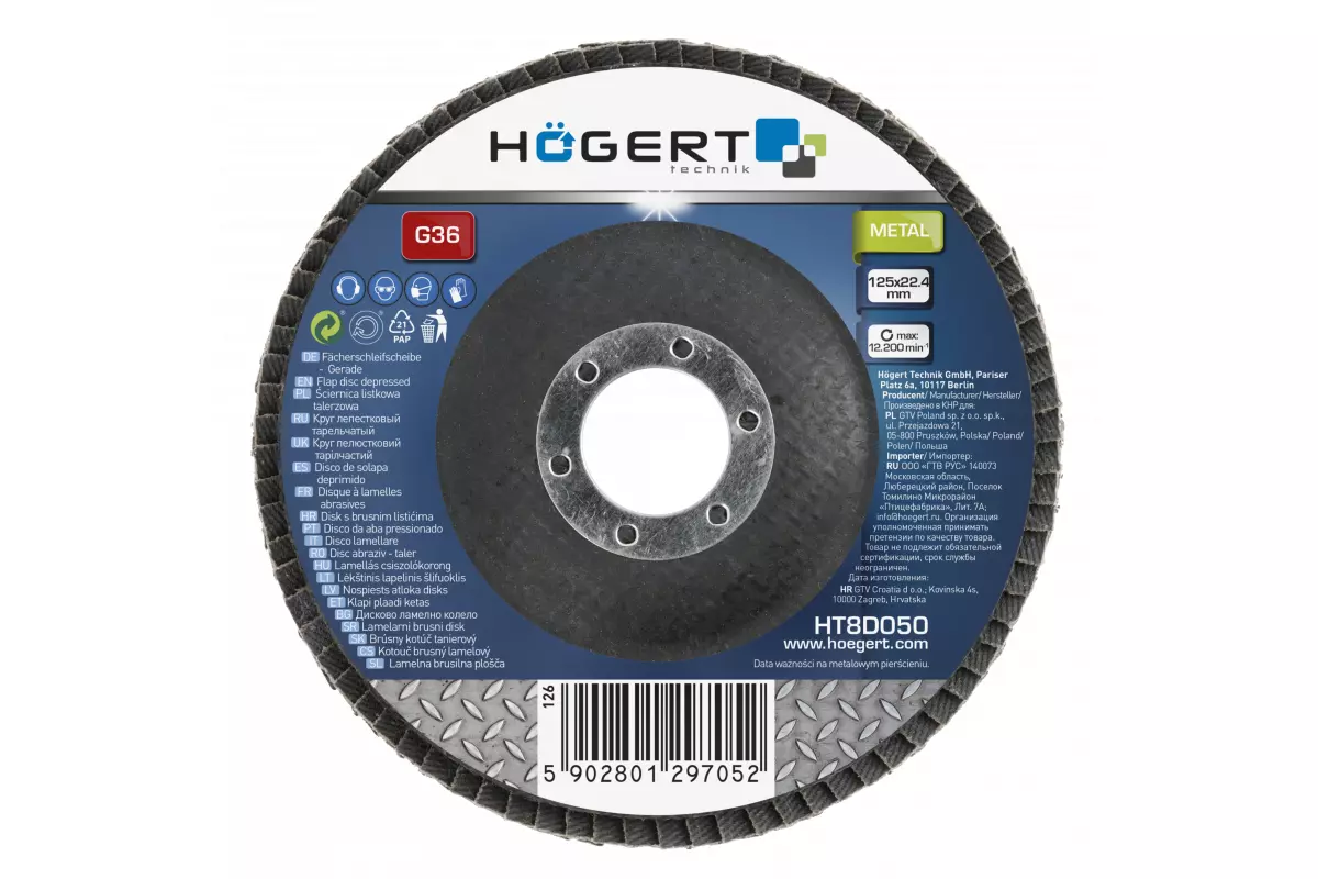 <p>Дисковый лепестковый шлифовальный круг 125x22.4 зерно 60 Hogert (HT8D052): основная информация</p>