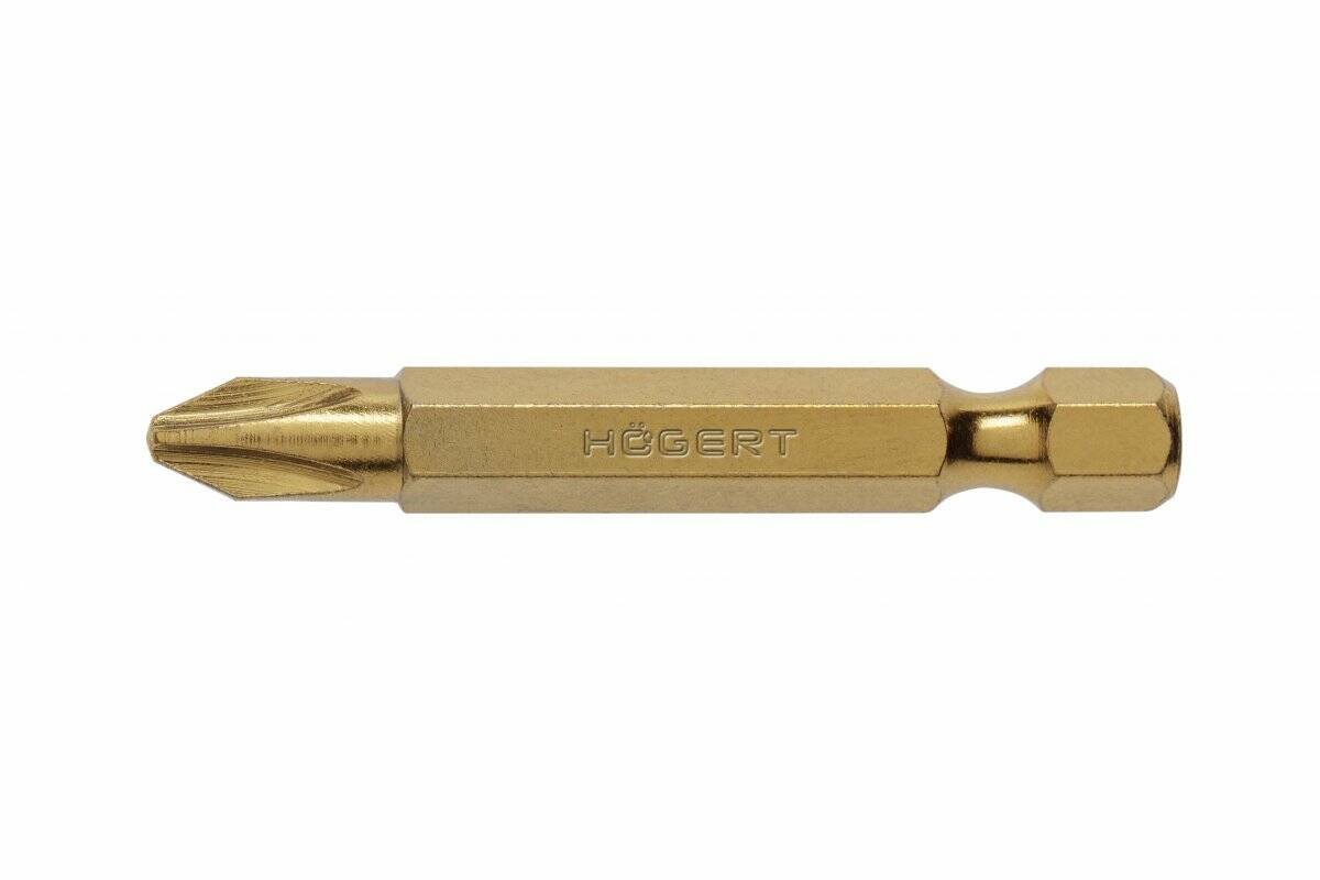 <p>Длинные биты PH2 50 мм с титановым нитридом S2 сталь Hogert (HT1S392)</p>