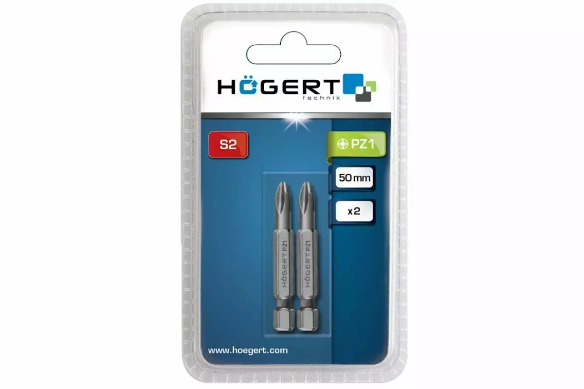<p>Длинные биты PZ1 50 мм набор 2 шт Hogert для шуруповерта (HT1S318): особенности</p>