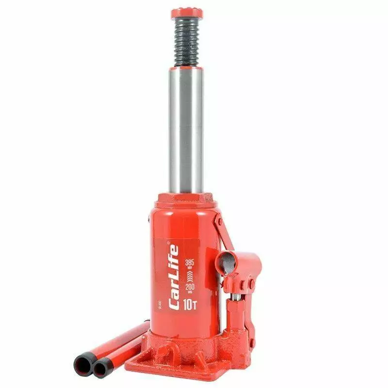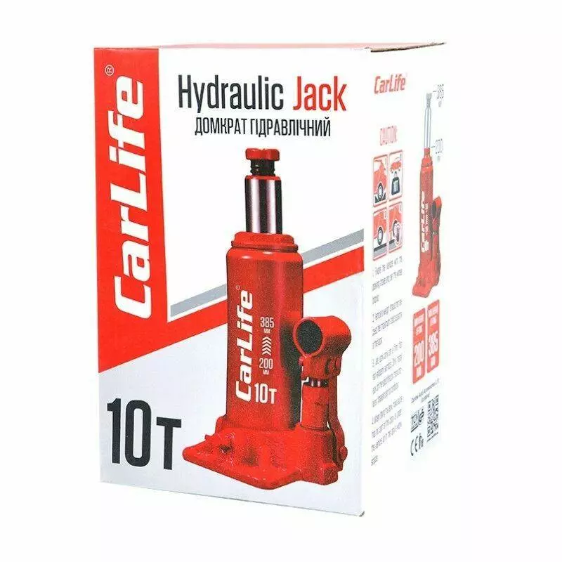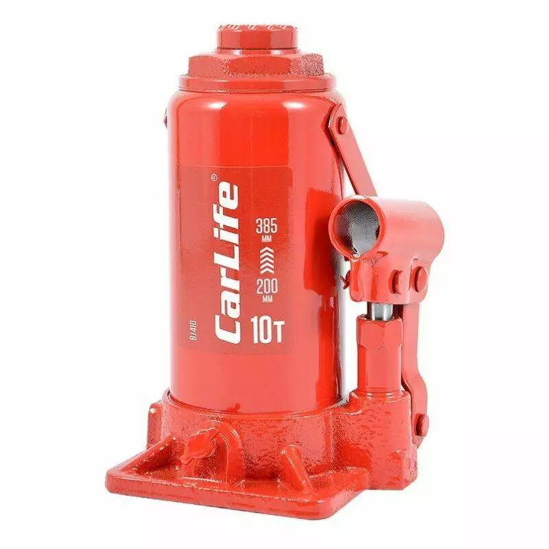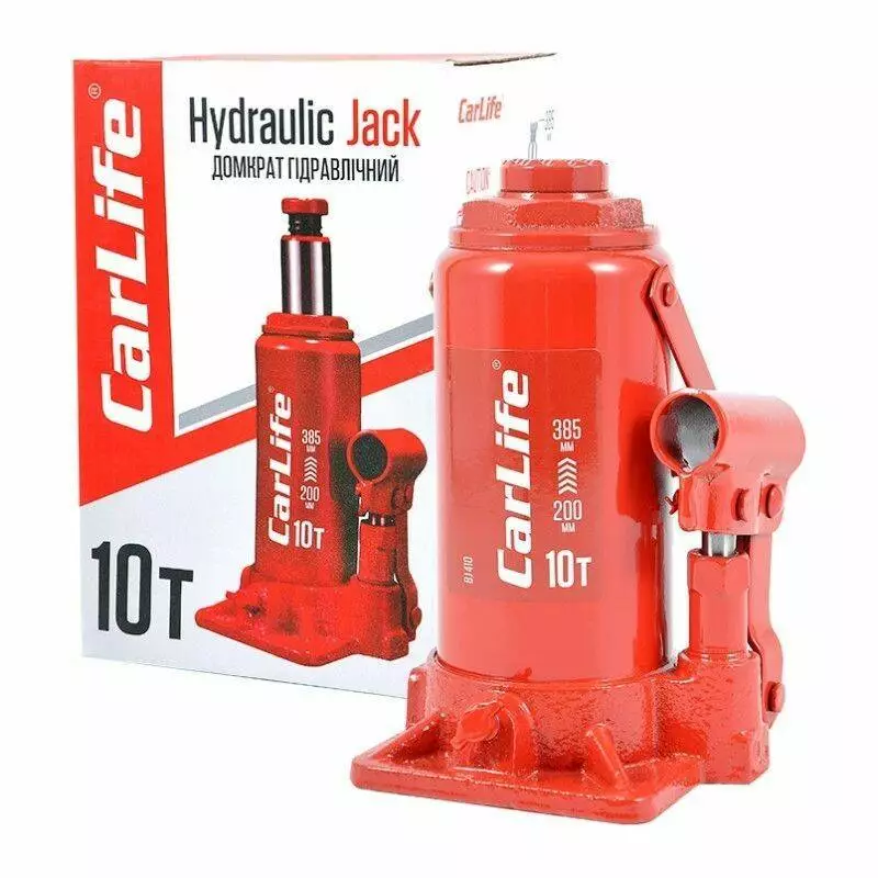 Домкрат гидравлический бутылочный 10т CarLife 200-385мм для автомобиля в картонной упаковке (BJ410)