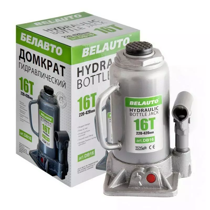 Домкрат гидравлический бутылочный 16т BELAUTO 220-420мм для автомобиля в картонной упаковке (DB16)