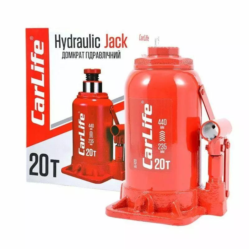 Домкрат гидравлический бутылочный 20т CarLife 235-440мм для автомобиля в картонной упаковке (BJ420)