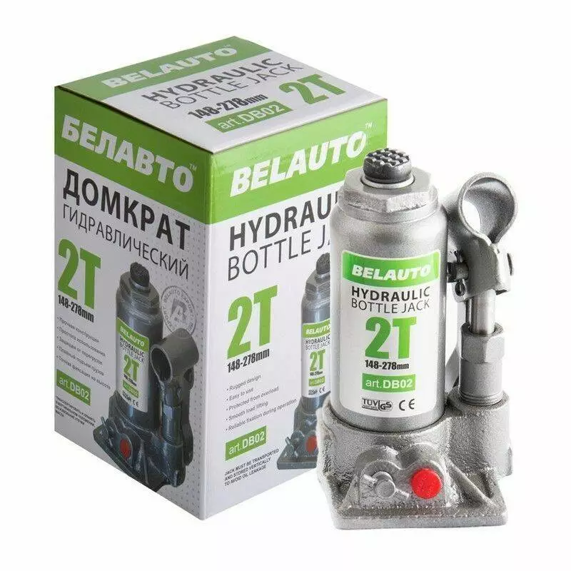 Домкрат гидравлический бутылочный 2т BELAUTO 148-278мм для автомобиля в картонной упаковке (DB02)