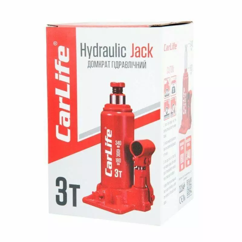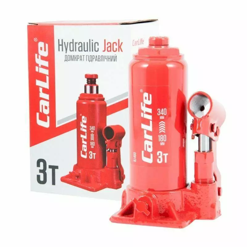 Домкрат гидравлический бутылочный 3т CarLife 180-340мм для автомобиля в картонной упаковке (BJ403)