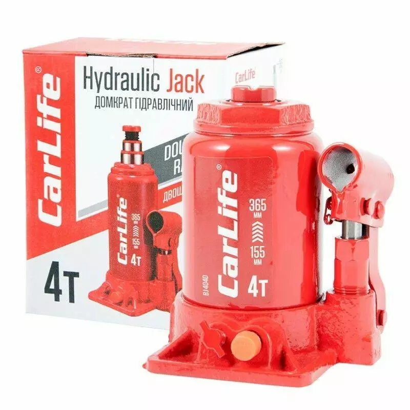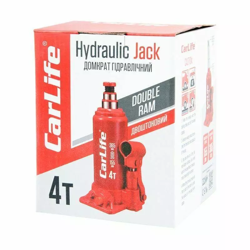 Домкрат гидравлический бутылочный 4т CarLife 155-365мм для автомобиля в картонной упаковке (BJ404D)