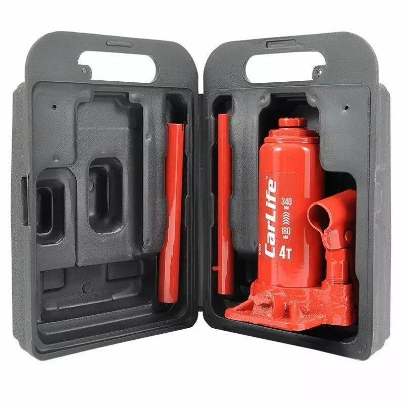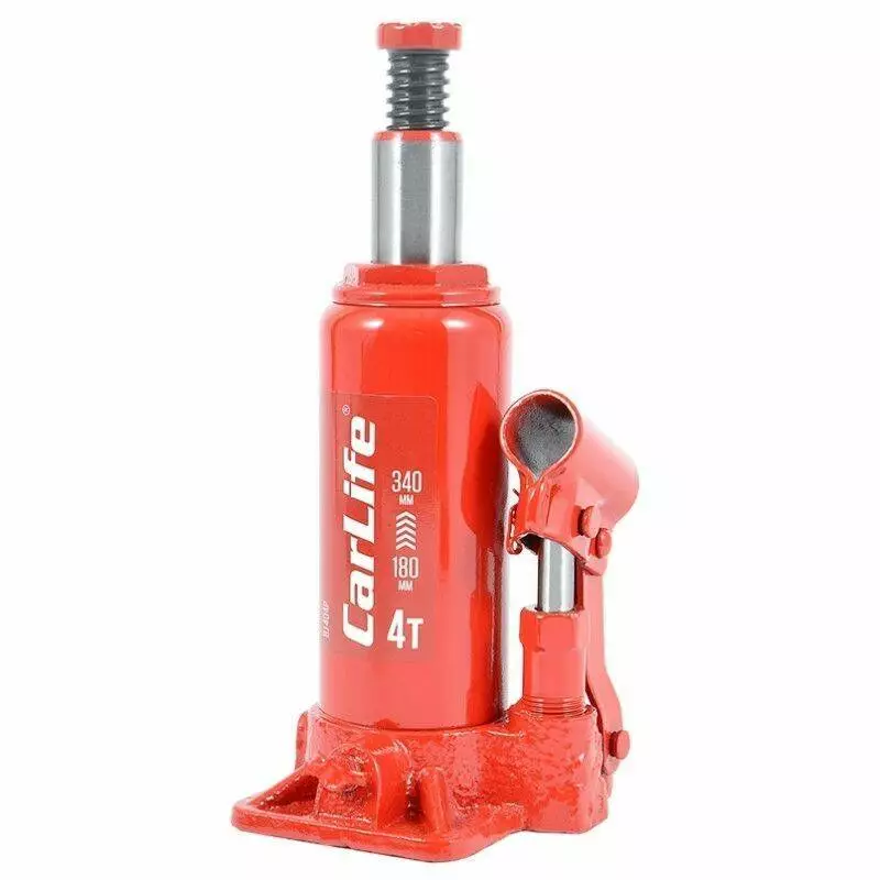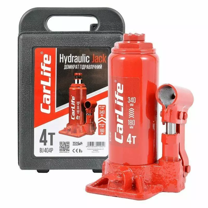 Домкрат гидравлический бутылочный 4т CarLife 180-340мм для автомобиля в пластиковой упаковке (BJ404P)